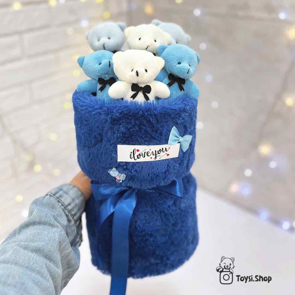 این بوکت با طراحی منحصر به فرد و دلنشین خود ، از همان نگاه اول توجه هر کسی را به خود جلب می کند. بوکت خرس آبی ولنتاین ترکیبی از عروسک های خرسی کوچک است که در کنار جزئیات ظریف و عاشقانه همچون روبان لاکچری ، جلوه ای خاص دارد. رنگ آبی این محصول حس آرامش و محبت را به زیبایی منعکس می کند. با انتخاب این بوکت ، نه تنها هدیه ای شیک و متفاوت به عزیزتان تقدیم می کنید ، بلکه احساسی سرشار از عشق و صمیمیت را نیز به او منتقل خواهید کرد.