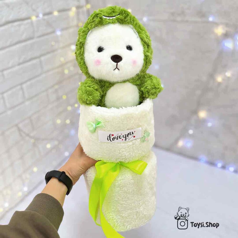 عروسک خرس در فرهنگ ولنتاین نماد عشق ، مهربانی و حمایت است. استفاده از عروسک خرس در این محصول ، نشان دهنده گرمای عشق و ارتباط عمیق بین عاشقان است. هر بار که گیرنده به این بوکت نگاه کند ، احساس زیبای عشق در ذهن او زنده می شود. اگر به دنبال خرید عروسک خرس برای ولنتاین هستید ، بوکت خرس سبز یک انتخاب بی نظیر خواهد بود. این محصول هم به عنوان عروسک خرس دخترانه ولنتاین و هم عروسک خرس پسرانه ولنتاین در یک طراحی خاص عرضه می شود. تویزی شاپ با تنوع فوق العاده در محصولات ، مدل های دیگری از دسته گل های عروسکی از جمله بوکت عروسک خرس ولنتاین و بوکت خرس لباس مایک را نیز ارائه می دهد تا بتوانید بر اساس سلیقه خود انتخاب کنید.