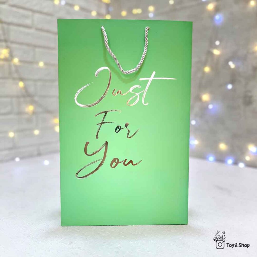 بگ کادویی Just For You با طراحی زیبا و رنگ سبز دلنشین ، یک انتخاب عالی برای هر هدیه ای است. وقتی صحبت از هدیه می شود ، اولین چیزی که توجه مخاطب را به خود جلب می کند ، نحوه بسته بندی هدیه است. بگ کادویی Just For You به شما کمک می کند تا هدیه ای ساده را به یک سورپرایز ویژه تبدیل کنید و عشق و توجهتان را به عزیزان خود به نمایش بگذارید.