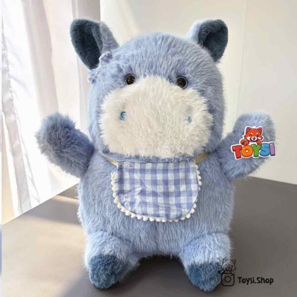 یکی دیگر از عروسک های این مجموعه، عروسک اسب آبی پیش بندی است. این عروسک پولیشی با رنگ آبی روشن و پیش بند شاداب خود، توجه هر کسی را به خود جلب می کند. علاوه بر ظاهر دوستداشتنی، این عروسک جنسی نرم و لطیف دارد و برای بازی کودکان و استفاده در کلکسیون ها مناسب است. همچنین سایز ۴۰ سانتیمتری عروسک اسب آبی باعث می شود برای بازی و برای دکور انتخابی ایده آل باشد. اگر به دنبال خرید عروسک آبی هستید، این محصول یک انتخاب خاص است. عروسک استیچ خابالو و عروسک سالیوان با لباس دیگر عروسک های همرنگ در تویزی شاپ هستند.