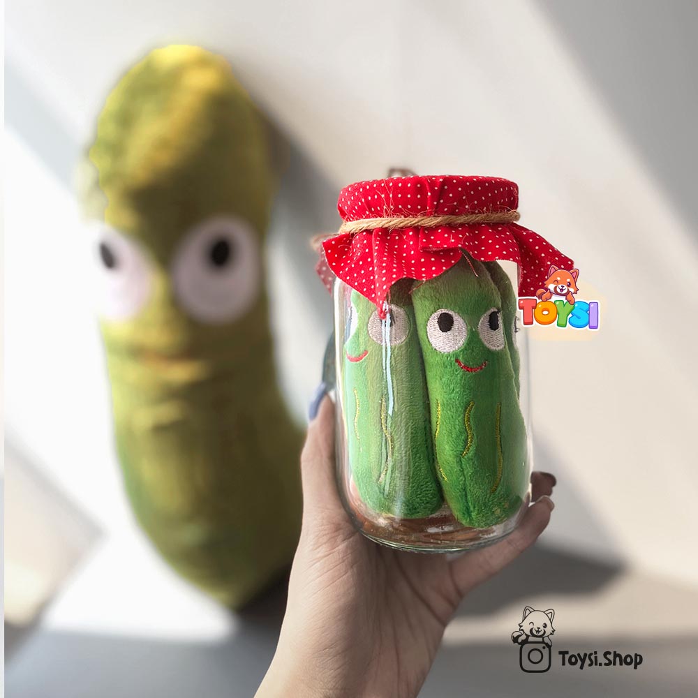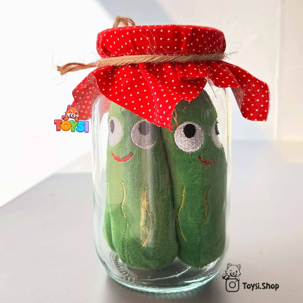 از طرفی ، عروسک خیارشور شیشه ای می تواند برای کودکان به عنوان یک ابزار بازی و یادگیری بسیار مفید باشد. کودک می تواند با باز و بسته کردن درِ شیشه ، خیارشورها را داخل آن بگذارد یا خارج کند. این کار به هماهنگی چشم و دست کمک می کند و مهارت های حرکتی ظریف کودک را تقویت می نماید. همچنین والدین می توانند از این عروسک برای آموزش مفاهیمی مثل “کم و زیاد” ، “داخل و بیرون” یا حتی آموزش رنگ ها استفاده کنند. ظاهر بامزه و نرم خیارشورهای پولیشی نیز باعث می شود کودک با علاقه بیشتری به بازی بپردازد. می توان گفت عروسک ترب گلدانی دیگر عروسک در این سبک و سیاق است.