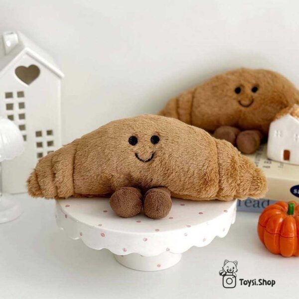 نام و طراحی این عروسک از خوراکی خوشمزه و معروف فرانسوی یعنی کروسان گرفته شده است. کروسان نمادی از صبحانه های دلچسب و آرامش بخش است. به همین دلیل عروسک پولیشی کروسان برای کسانی که عاشق خوراکی های شیرین و جذاب هستند یک انتخاب فوق العاده است. اگر جزو افرادی هستید که همیشه دنبال چیزهای خاص و متفاوت می گردید، بدون شک این عروسک لبخند به لب شما می آورد. ظاهر بامزه و الهام گرفته از خوراکی های واقعی حس مثبت و نشاطی کودکانه به شما منتقل می کند. عروسک قند و عروسک نان تست دیگر محصولات مناسب برای کسانی است که به عروسکی خوراکی علاقمند هستند.