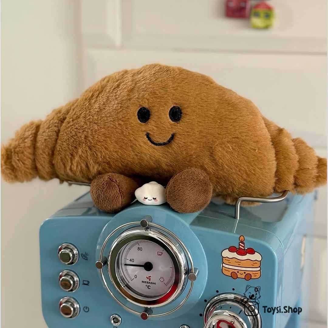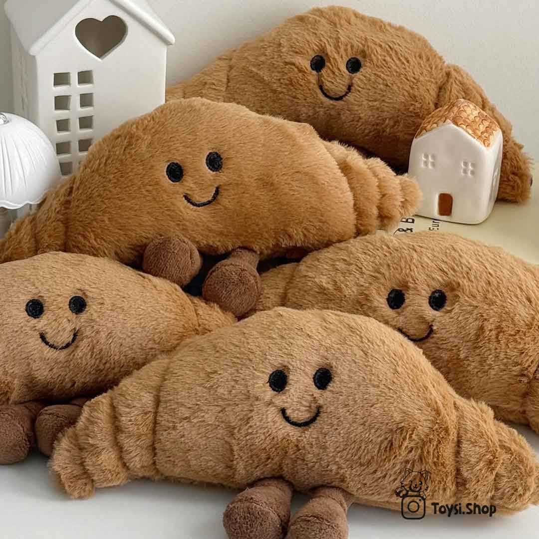 نام و طراحی این عروسک از خوراکی خوشمزه و معروف فرانسوی یعنی کروسان گرفته شده است. کروسان نمادی از صبحانه های دلچسب و آرامش بخش است. به همین دلیل عروسک پولیشی کروسان برای کسانی که عاشق خوراکی های شیرین و جذاب هستند یک انتخاب فوق العاده است. اگر جزو افرادی هستید که همیشه دنبال چیزهای خاص و متفاوت می گردید، بدون شک این عروسک لبخند به لب شما می آورد. ظاهر بامزه و الهام گرفته از خوراکی های واقعی حس مثبت و نشاطی کودکانه به شما منتقل می کند. عروسک قند و عروسک نان تست دیگر محصولات مناسب برای کسانی است که به عروسکی خوراکی علاقمند هستند.