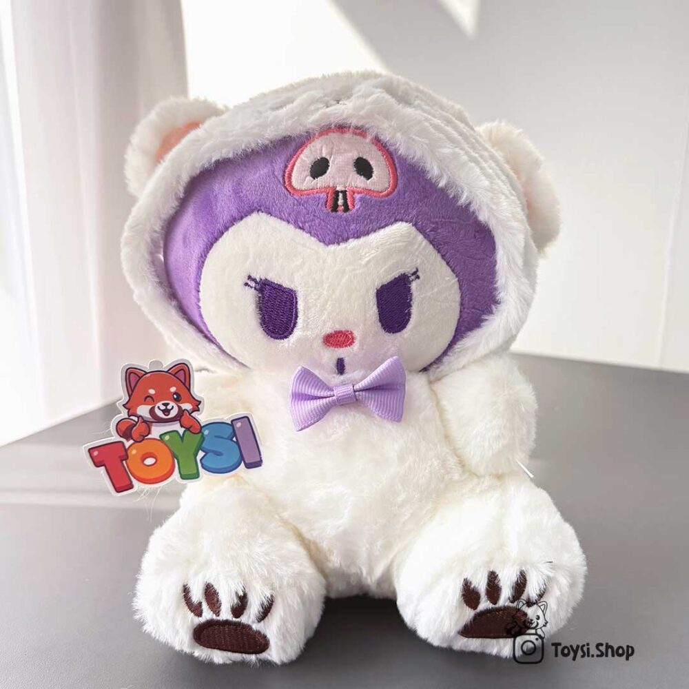 یکی از جذاب ترین ویژگی های این عروسک، لباس خرسی آن است. این لباس از جنس پولیشی است و با رنگ سفید جلوه ای دلنشین به عروسک می بخشد. گوش های گرد خرسی، پاپیون کوچک و فرم فانتزی لباس، به عروسک حالتی لطیف داده است. این جزئیات، کرومی را بامزه تر از همیشه به تصویر می کشد. این عروسک در سایز ۲۰ سانتیمتری تولید شده است، اندازه ای که نه تنها برای بازی کودکان مناسب است، بلکه می توان آن را در قفسه دکور، کنار تخت یا روی میز قرار داد. عروسک کرومی بنفش دامن توری و عروسک کرومی قلب بدست دیگر عروسک های جذاب از شخصیت کرومی هستند.